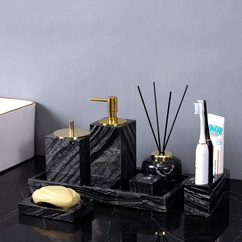 Postaw na luksus i funkcjonalność z Czarną mydelniczką z naturalnego marmuru.