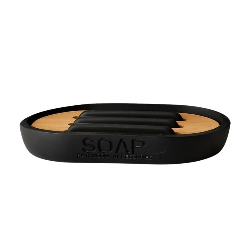 Czarna mydelniczka z wkładem bambusowym – Połączenie Stylu i Praktyczności