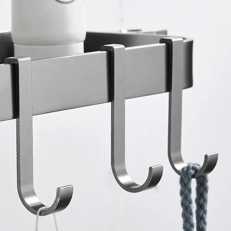 - Dodatkowe Haczyki: Praktyczne haczyki pozwalają na wygodne zawieszenie akcesoriów takich jak gąbki, myjki czy ręczniki, utrzymując je w czystości i suchości.