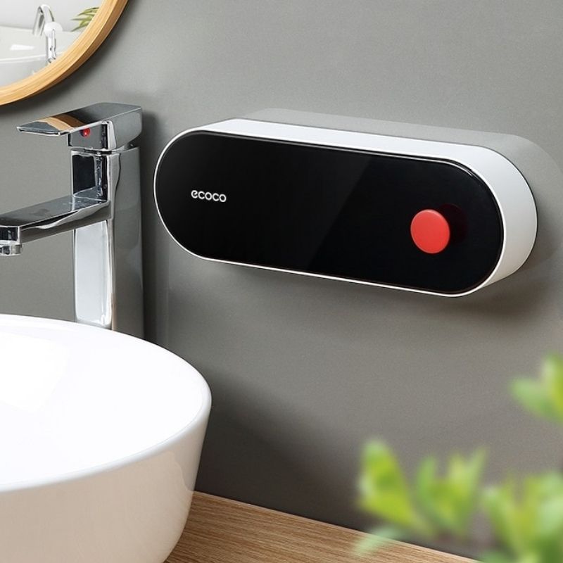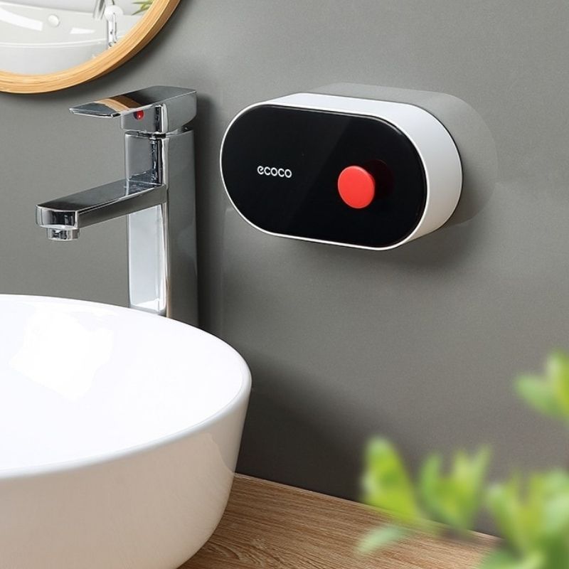 Zaprojektowana z dbałością o detale, ta designerska mydelniczka ścienna z ociekaczem zachwyca swoją prostotą i elegancją. Jej minimalistyczny kształt, z nowoczesnym czarnym panelem i subtelnym akcentem kolorystycznym (jak widoczny czerwony przycisk), doskonale wpasuje się w każde współczesne wnętrze, od klasycznego po industrialne. Montaż na ścianie to prawdziwa rewolucja w organizacji przestrzeni – zapomnij o zajętych blatach i trudnych do czyszczenia zakamarkach. Dzięki niej zyskujesz cenną przestrzeń wokół umywalki, a Twoja łazienka staje się bardziej przestronna, uporządkowana i znacznie łatwiejsza do utrzymania w czystości.